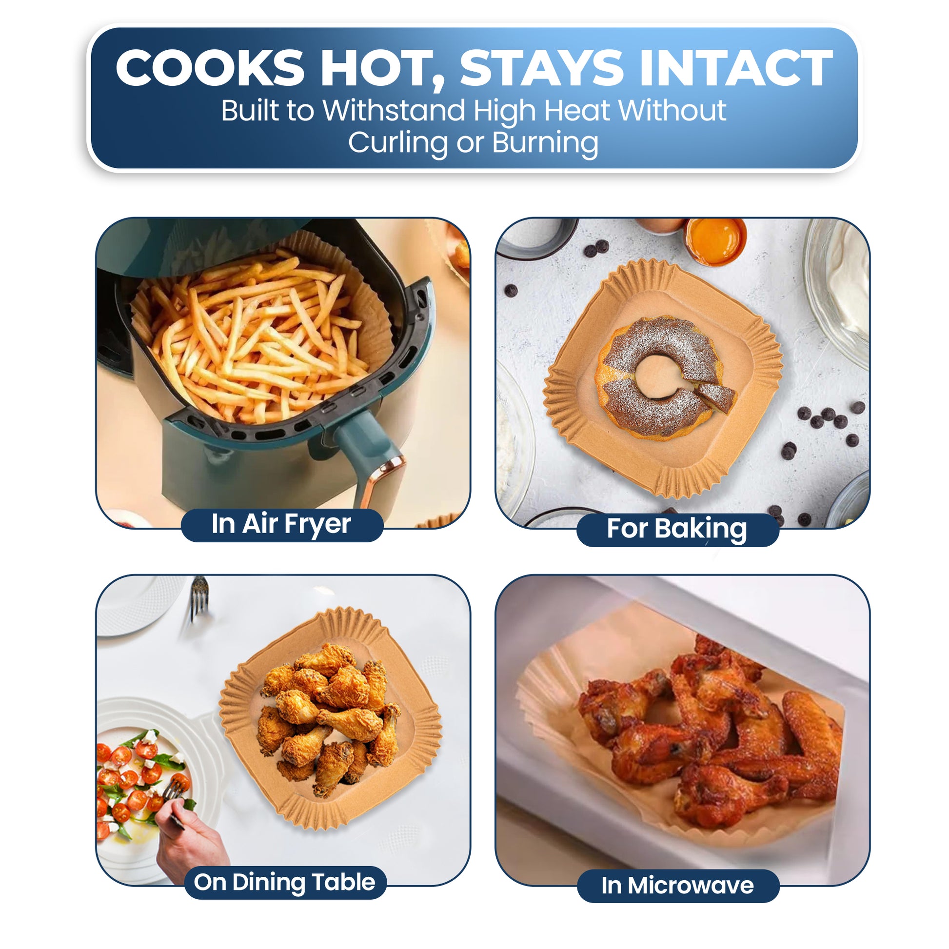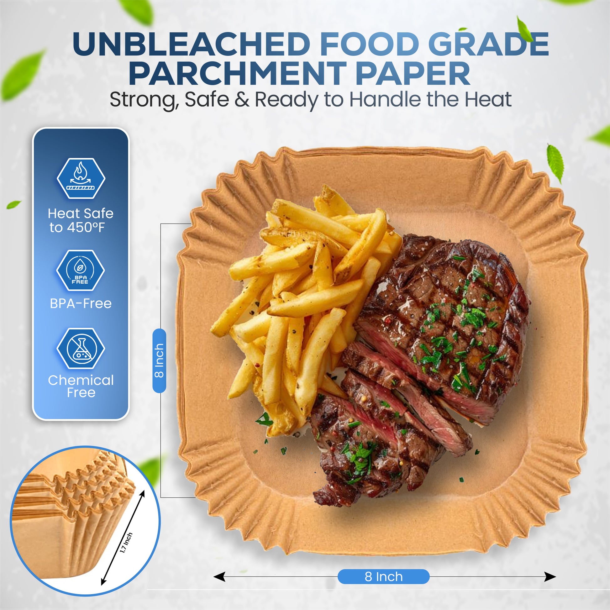 Air Fryer Paper Liner, 100 Count - Parchment Paper Basket Lining for Air Fryer, Non-Stick Cooking Surface, Microwaves and Conventional Oven Safe