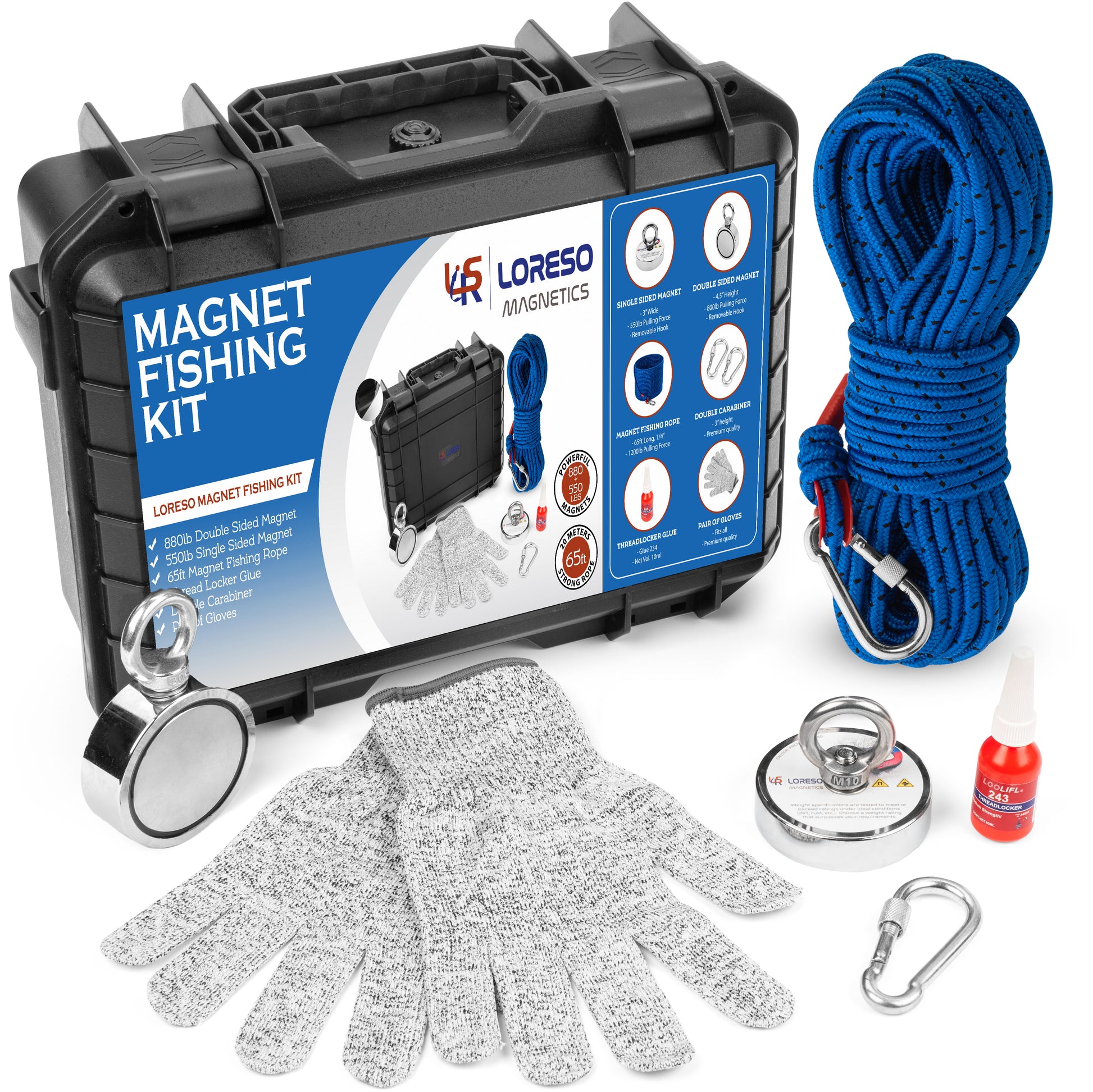 LORESO Magnet Fishing Kit MAG2300 Double Magnets 880lb +550lb Rope & Accessories