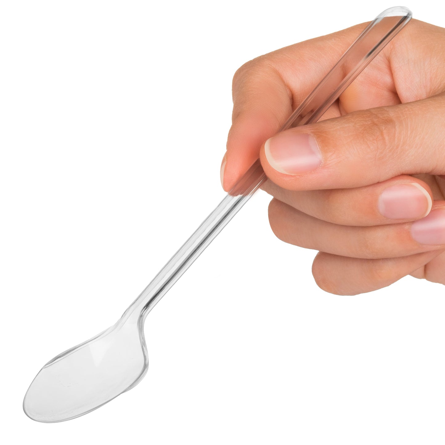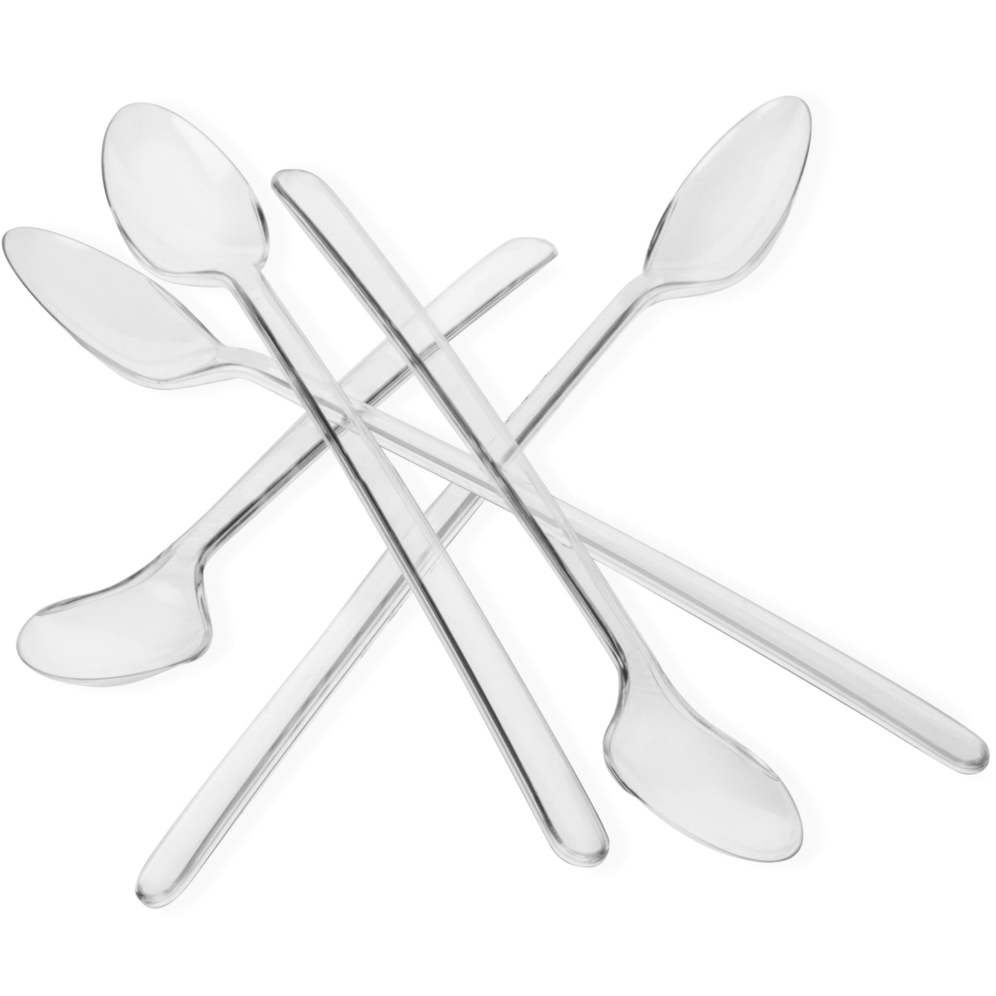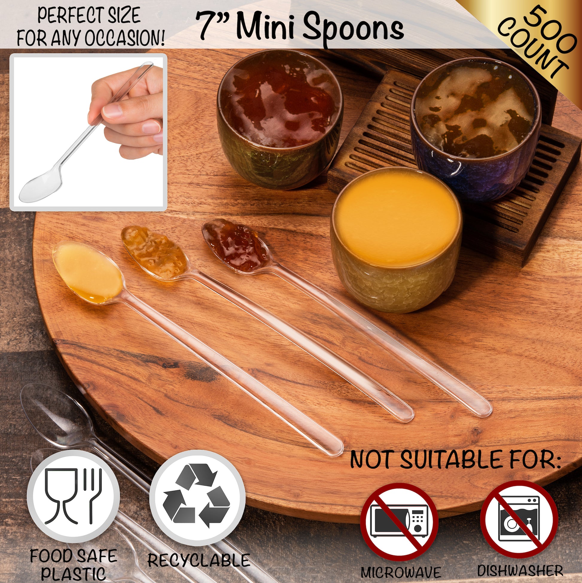 LORESO Disposable Plastic Spoons 50 Piece 7 Inch Clear - Spoons for Smoothie, Ice Cream, Mini Spoons for Tasting, Sampling, Appetizers, Small Catering Supplies